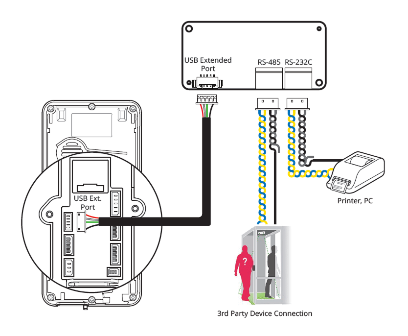 By equipping the Suprema device with an expansion module, you can additionally use RS-485 and RS-232C ports.