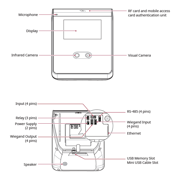 - The Suprema thermal camera (TCM10-FS2) cannot be used simultaneously with the USB memory.