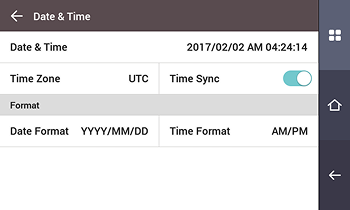 Date & Time: Check the current date and time. To modify it manually, disable Time Sync.