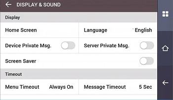 Message Timeout: Set the time (sec) for a setting complete message or notification message to disappear automatically.