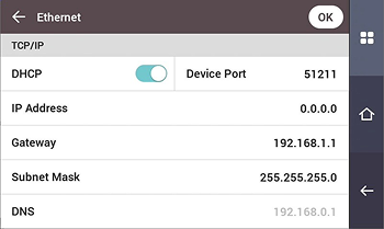 DHCP: Set whether to use DHCP. If DHCP setting is disabled, the user can modify IP Address, Gateway, and Subnet Mask.