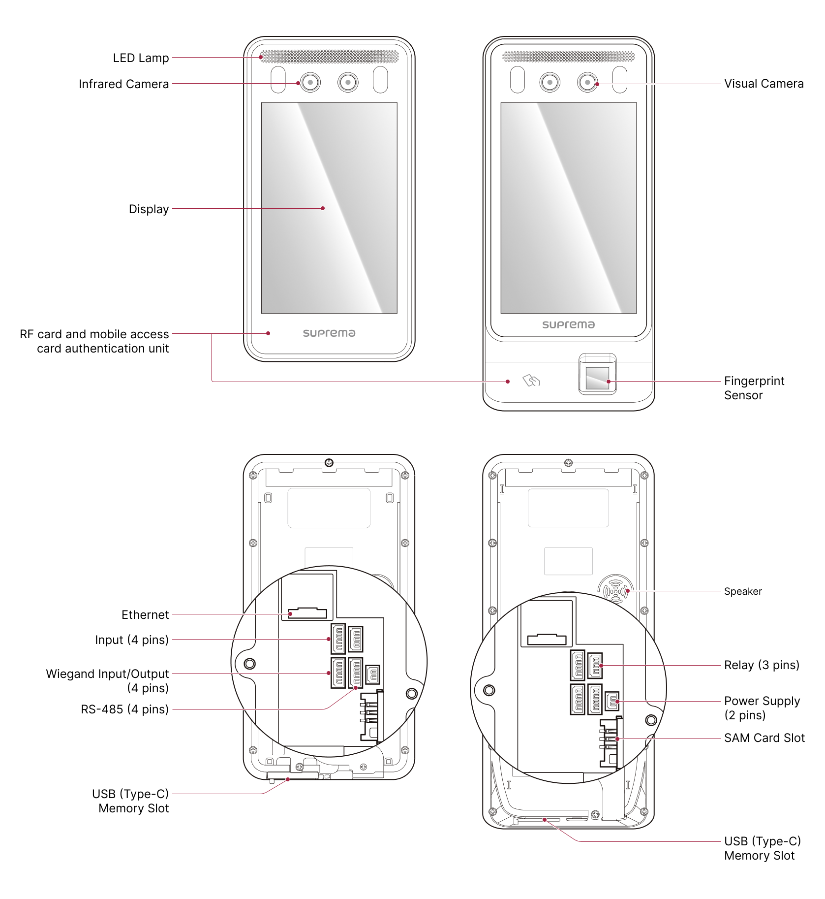 RF card and mobile access card authentication unit: Part to scan a RFID card or mobile access card for entrance.