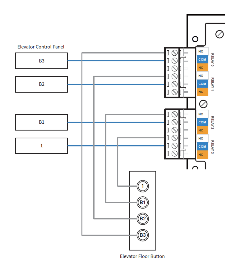 The method for connecting the relay may vary depending on the type of elevator. For more details, contact the elevator construction company.