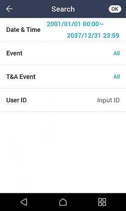 Set the search criteria and click OK to display logs that match the criteria.