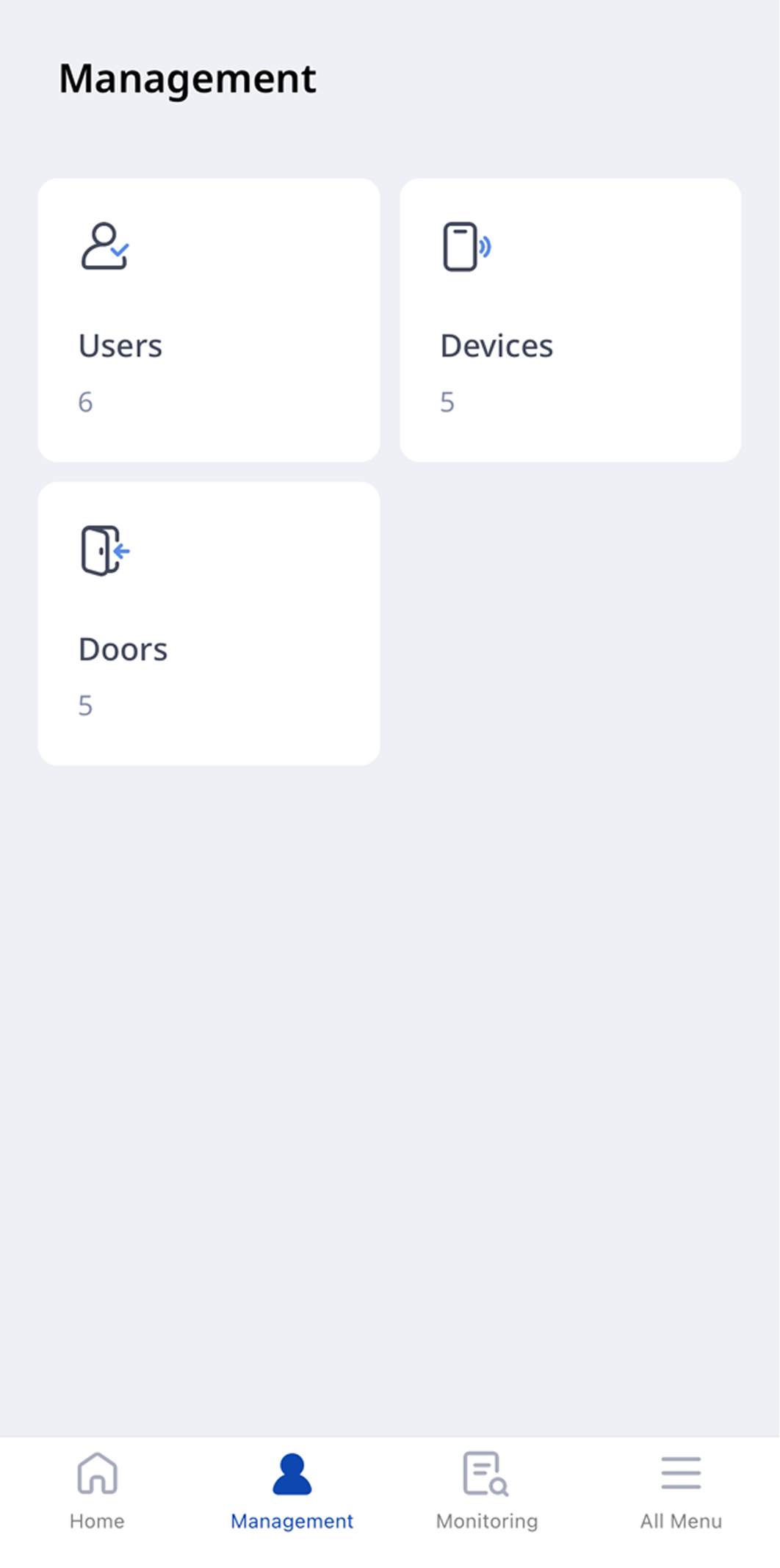 On the BioStar Air home screen, tap Management at the bottom.