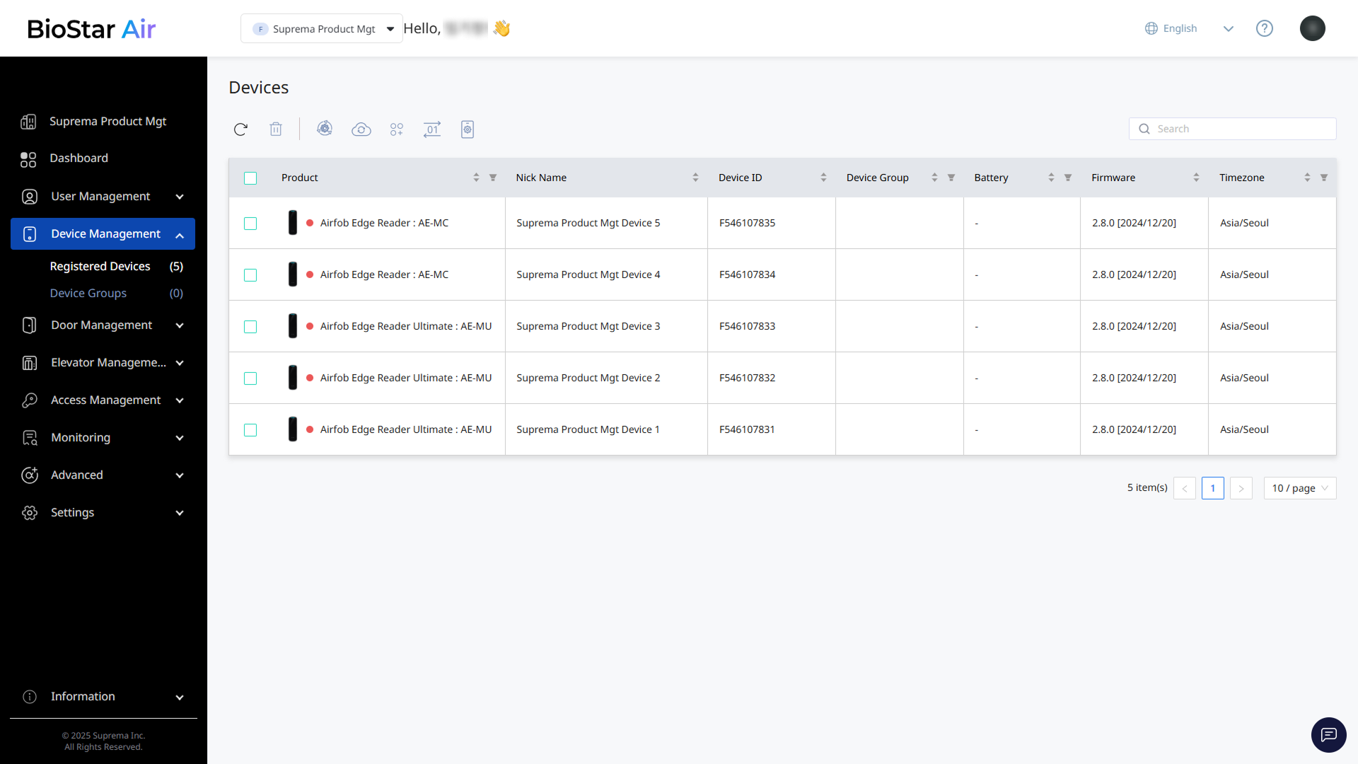 In Registered Devices, delete devices, update firmware, and manage device groups.