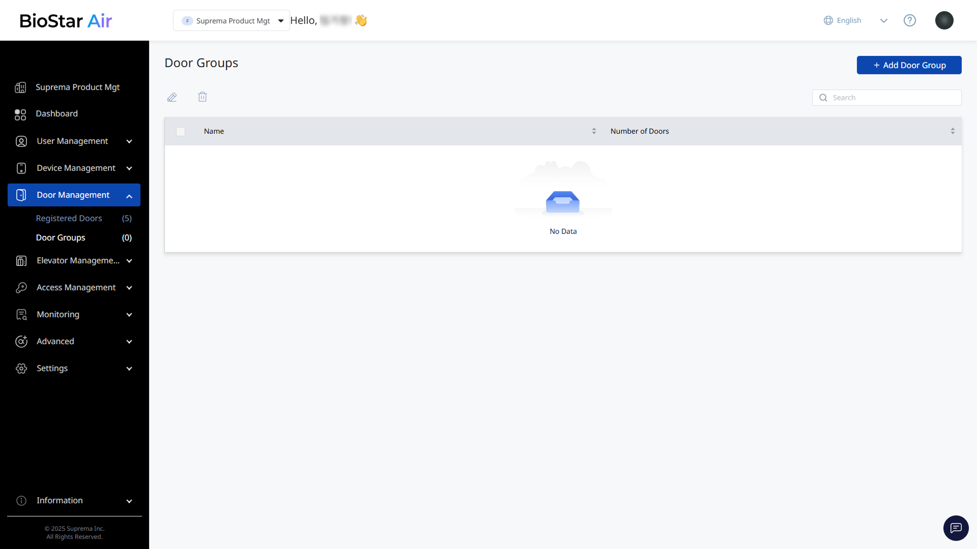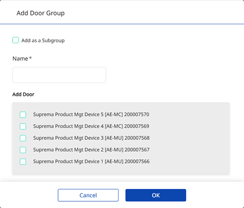 Click Add Door Group at the top right of the screen.