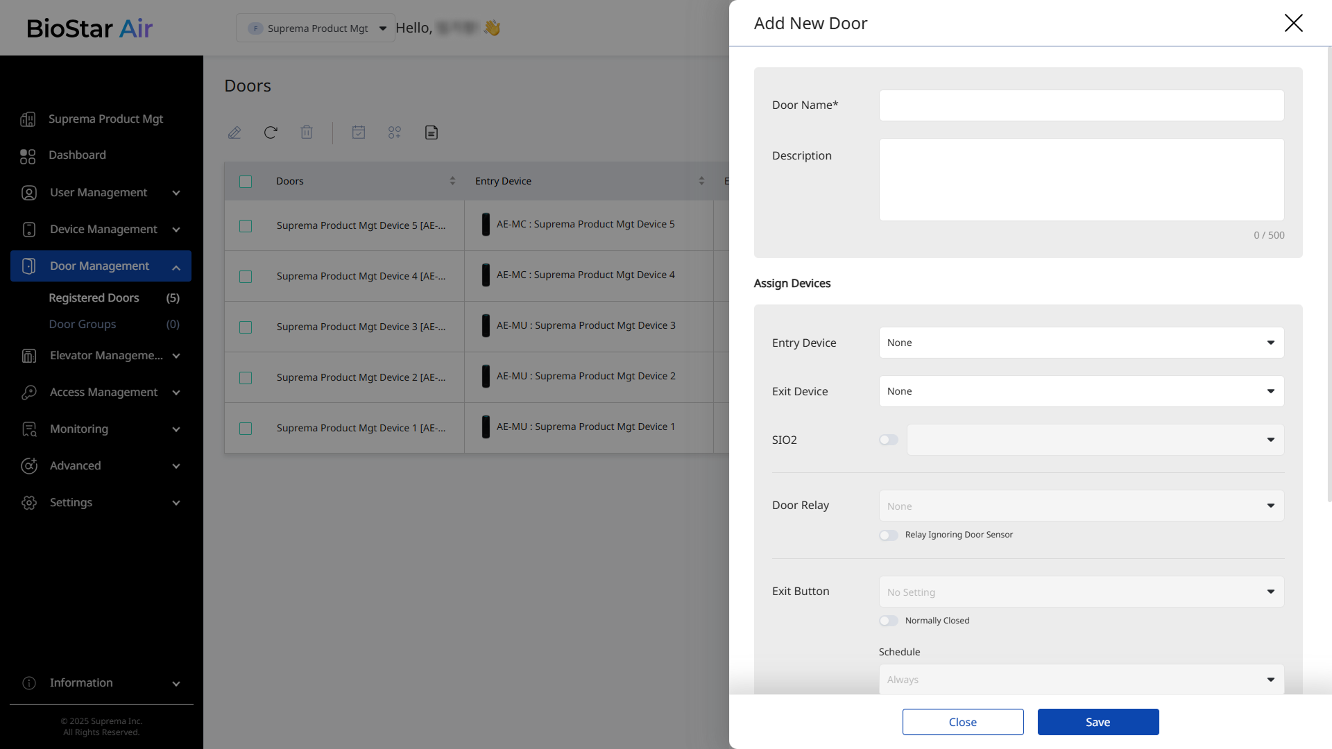 When the Add New Door panel appears, enter a name and description.