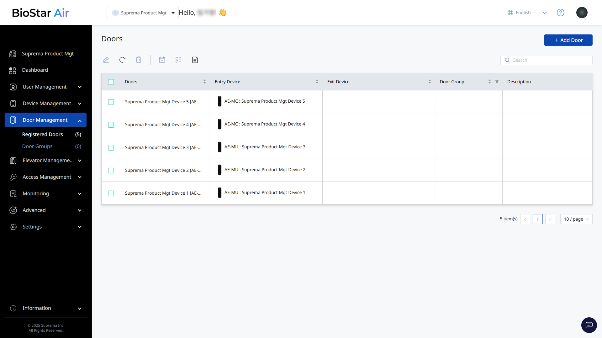Click Door Management → Registered Doors in the left sidebar.