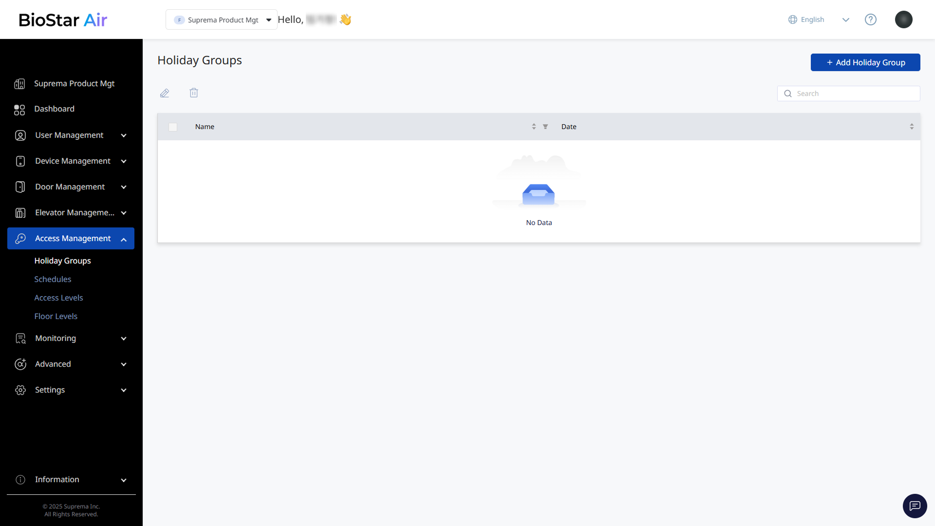 In the left sidebar, click Access Management → Holiday Groups.