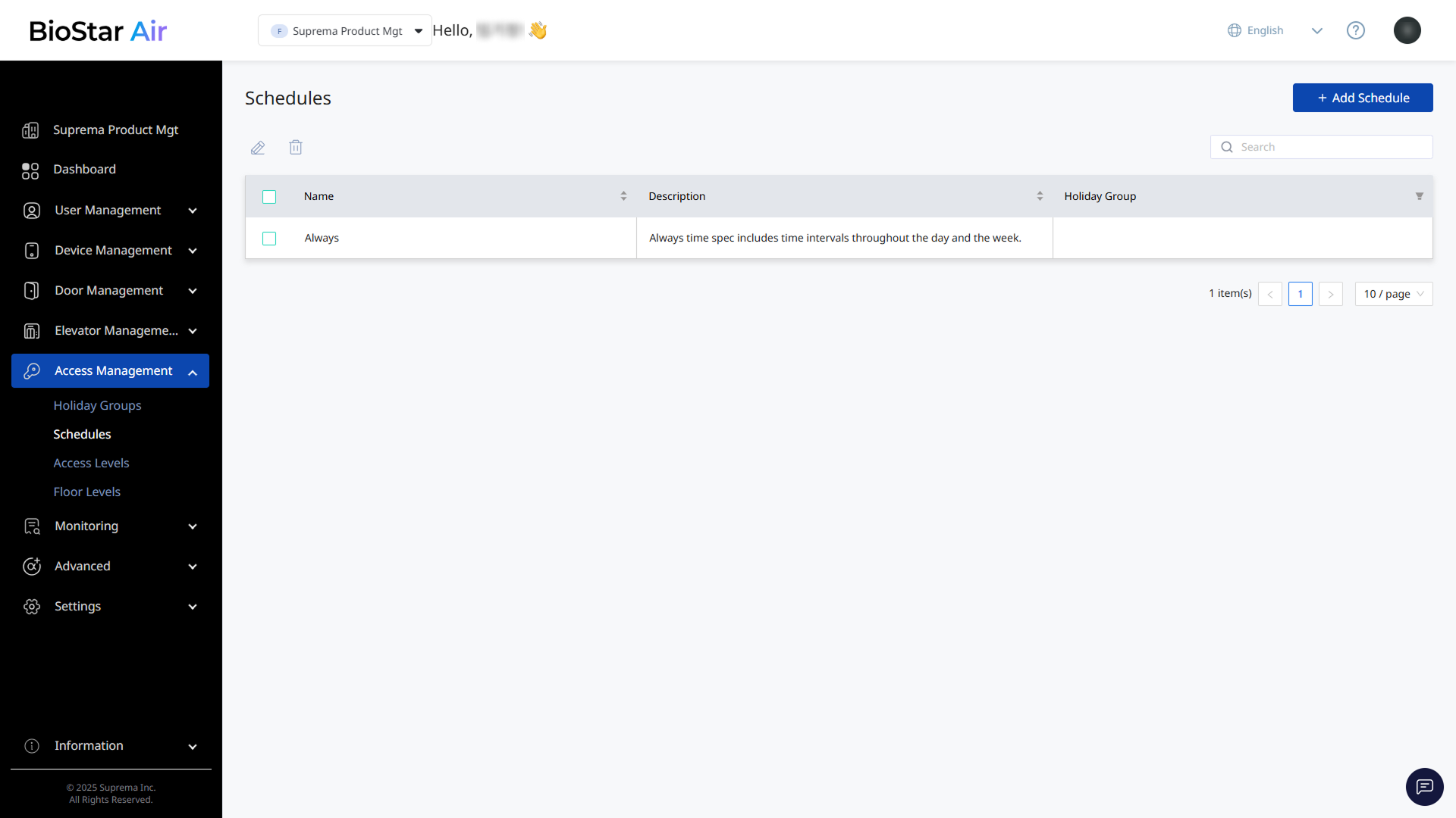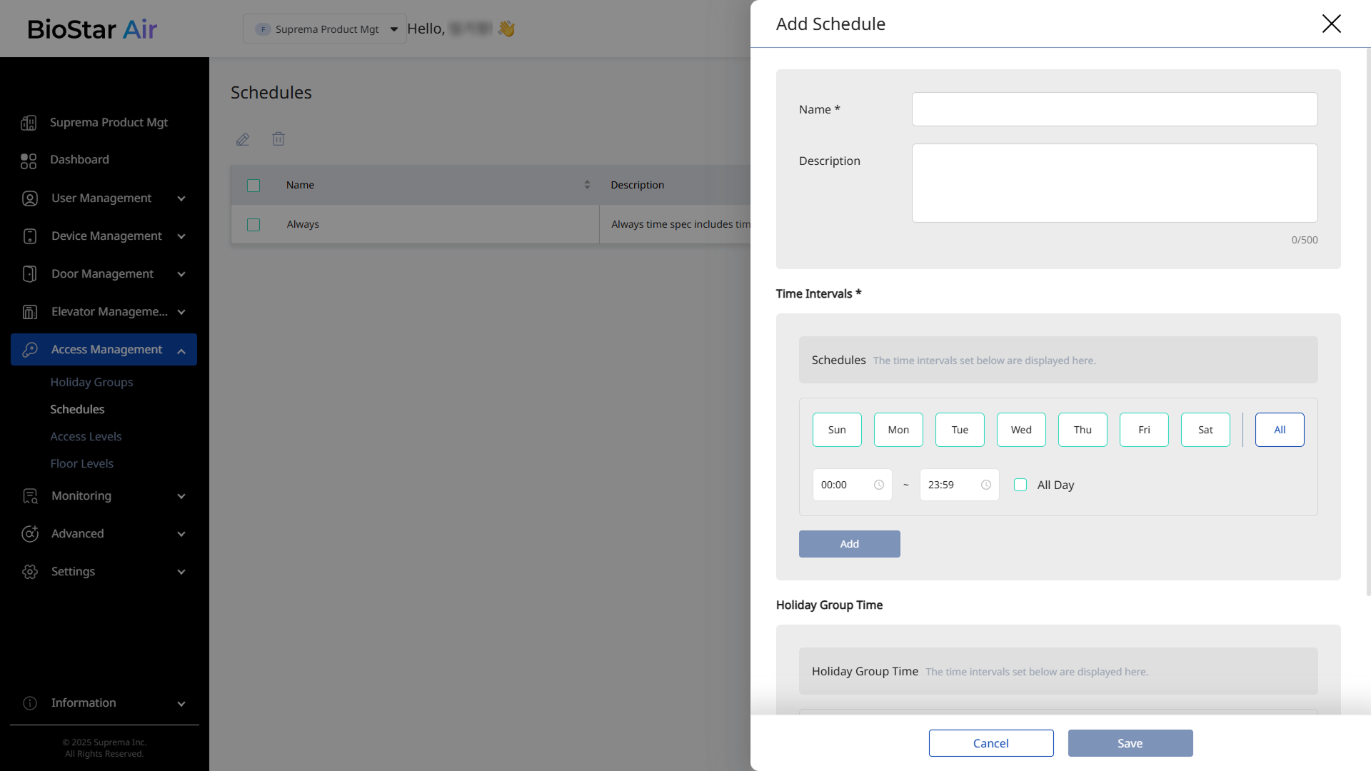 Click Access Management → Schedules in the left sidebar.