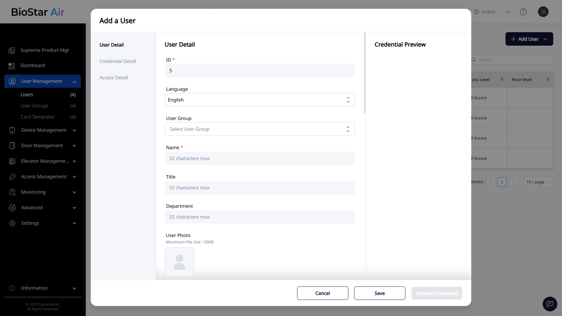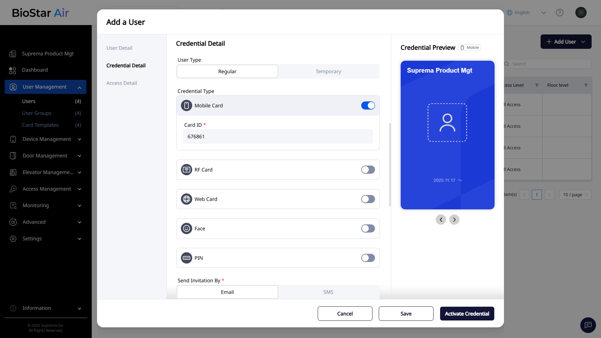To finish configuring the user’s access, click Activate Credential in the lower-right corner.