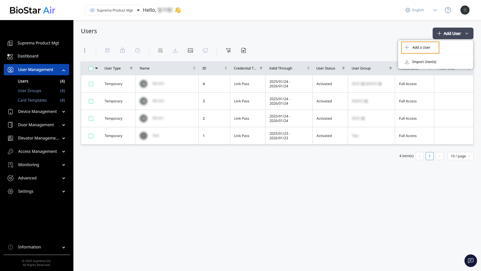 Site administrators can manage the site, and authenticated users can only access the site through the Suprema Pass app.