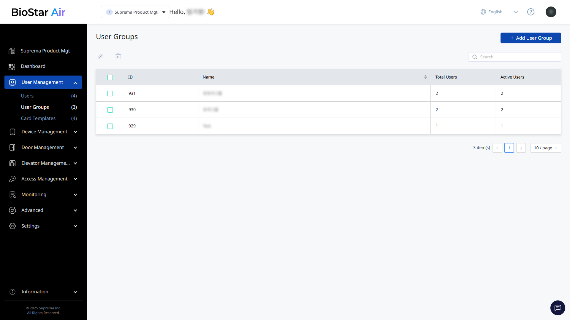 Click User Management → User Groups in the left sidebar.