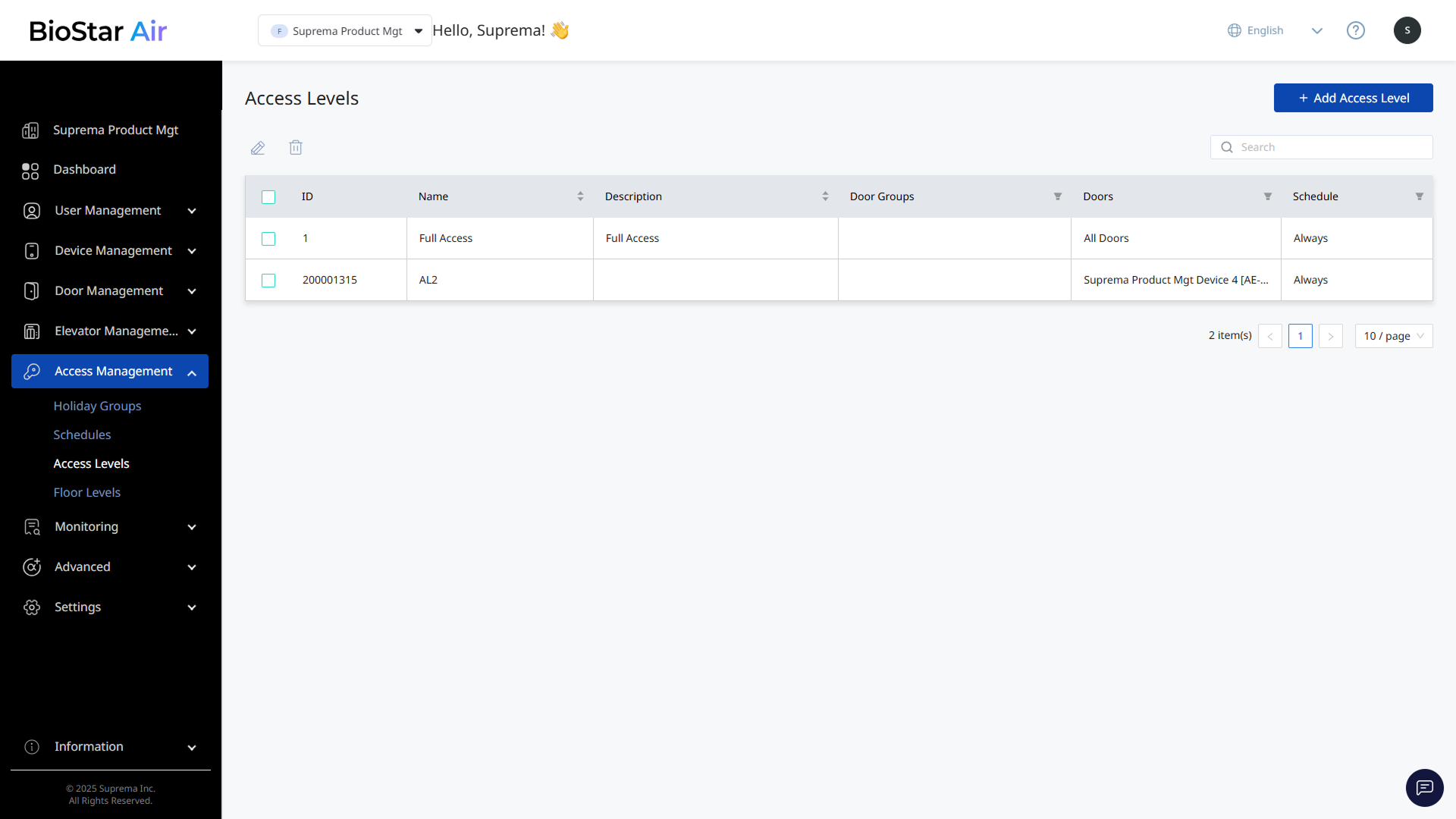 Click the access level you wish to modify from the access level list. Alternatively, select the checkbox of the access level you wish to modify and click at the top of the list.