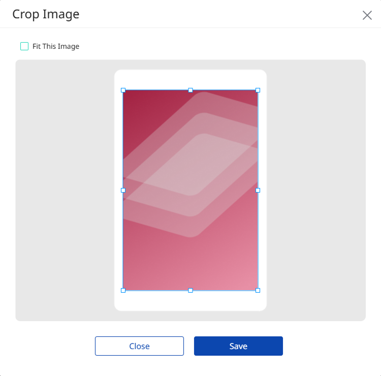 Background Image: Upload a background image for the mobile card. Click Upload, and then select a background image file stored locally. When the Crop Image window appears, click the Fit This Image option or manually adjust the size. After completing the image adjustments, click Save.