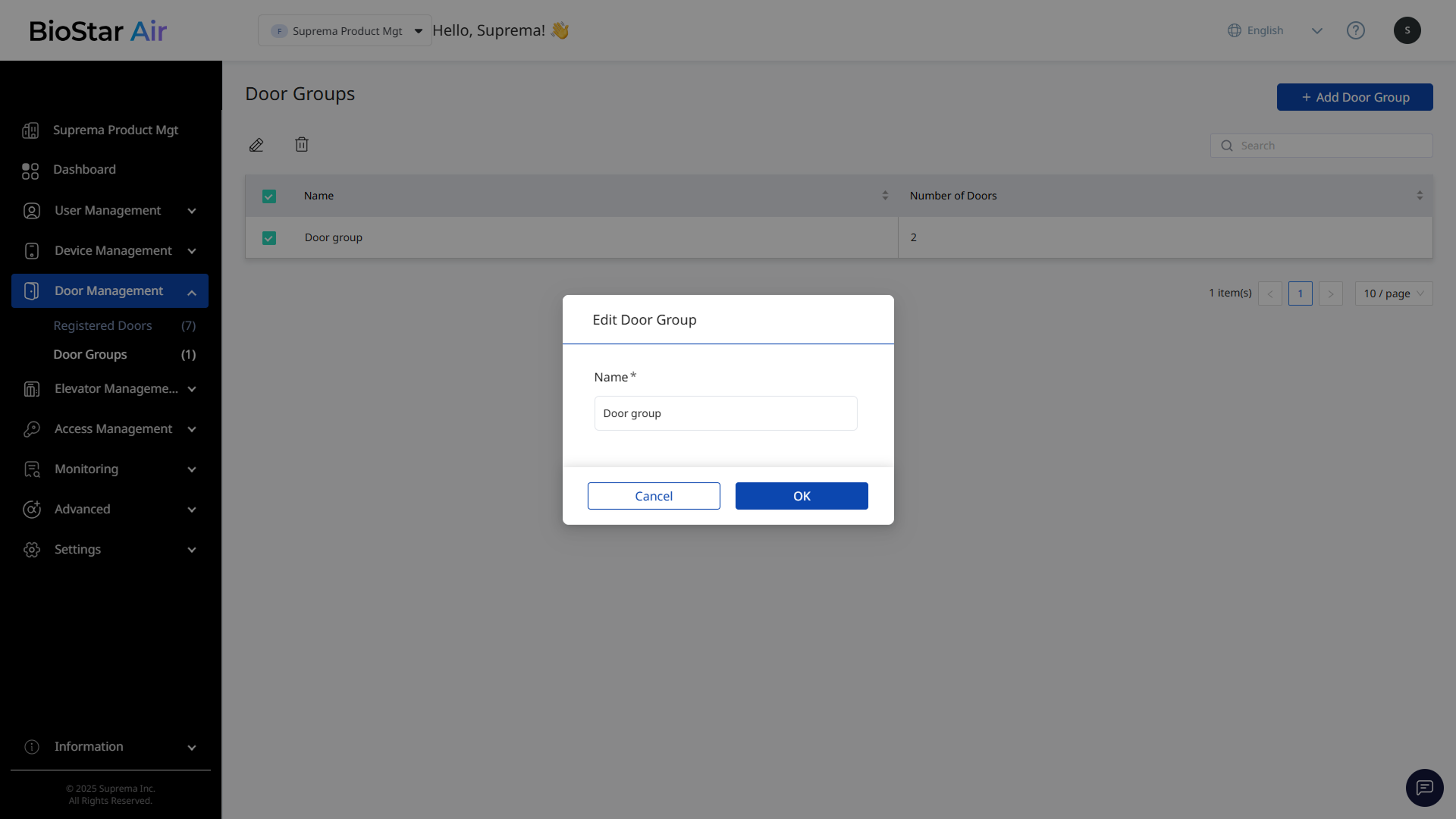 When the Edit Door Group window appears, enter the new group name.
