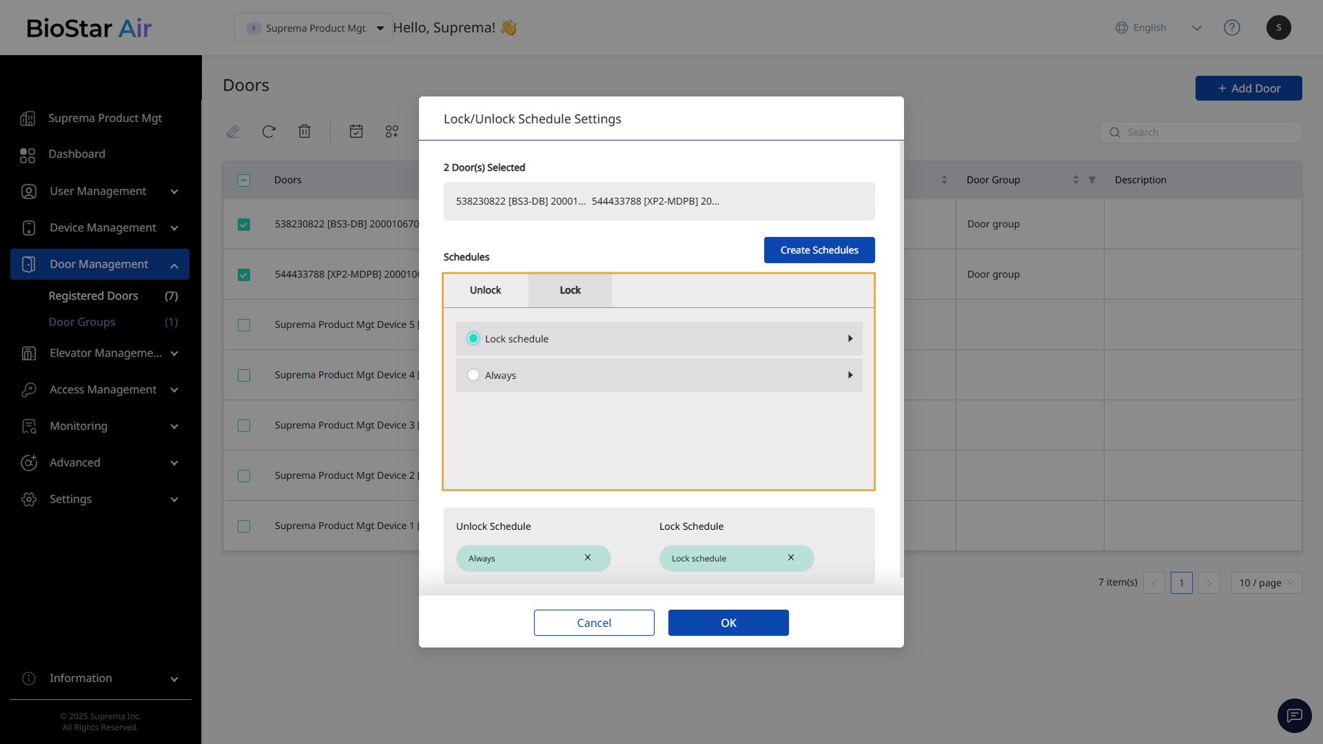 Manage Door Schedules