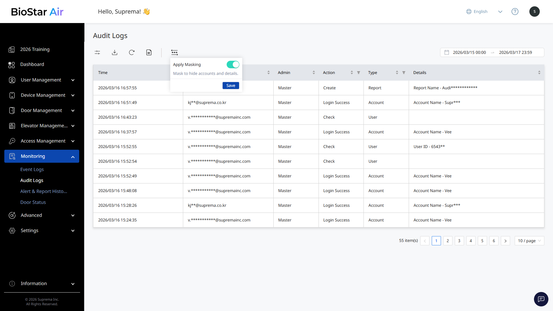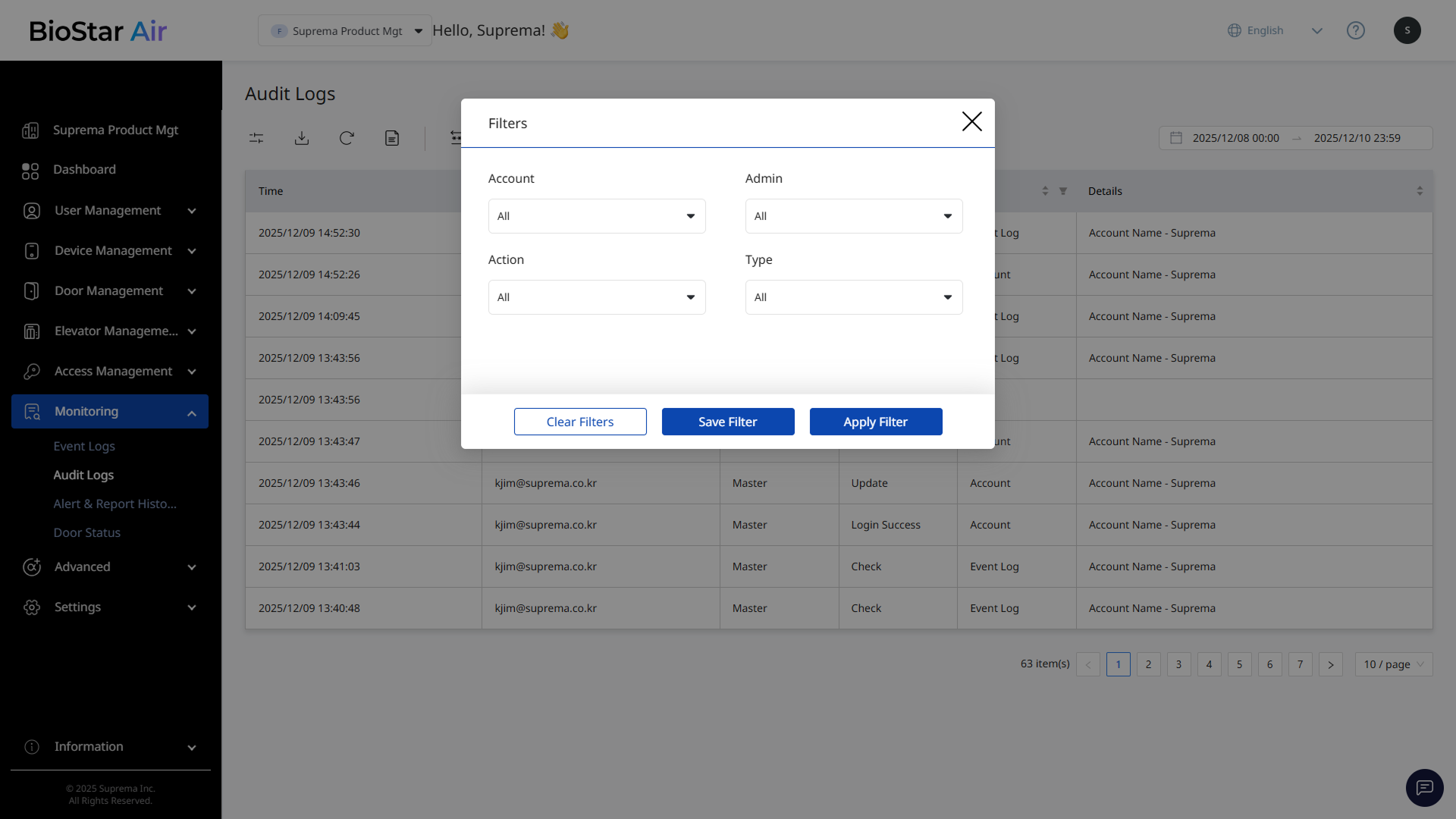 One of the key advantages of a cloud access control platform is the ability to monitor site activity anytime, anywhere. This document explains how to monitor and analyze audit logs in BioStar Air.