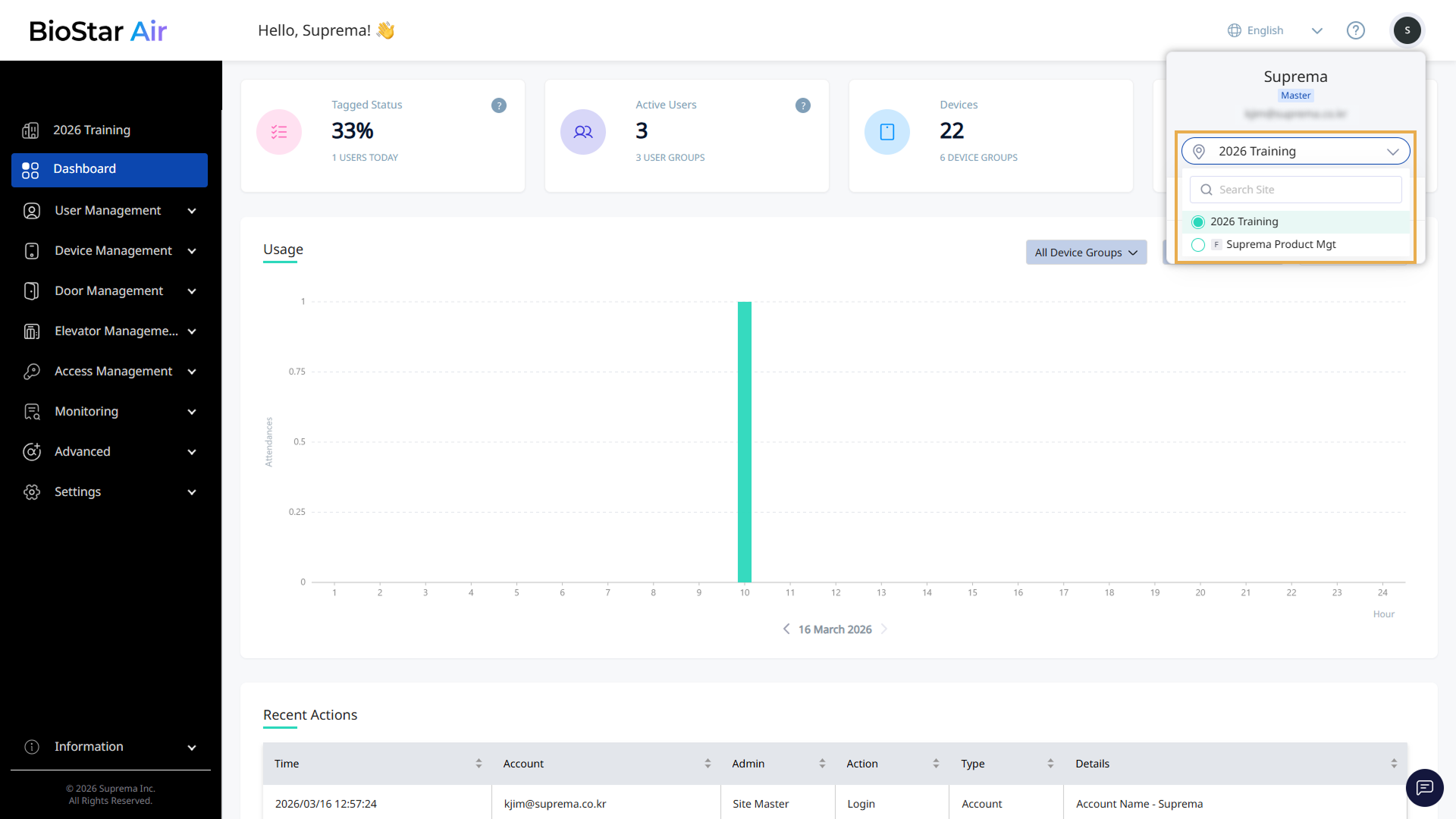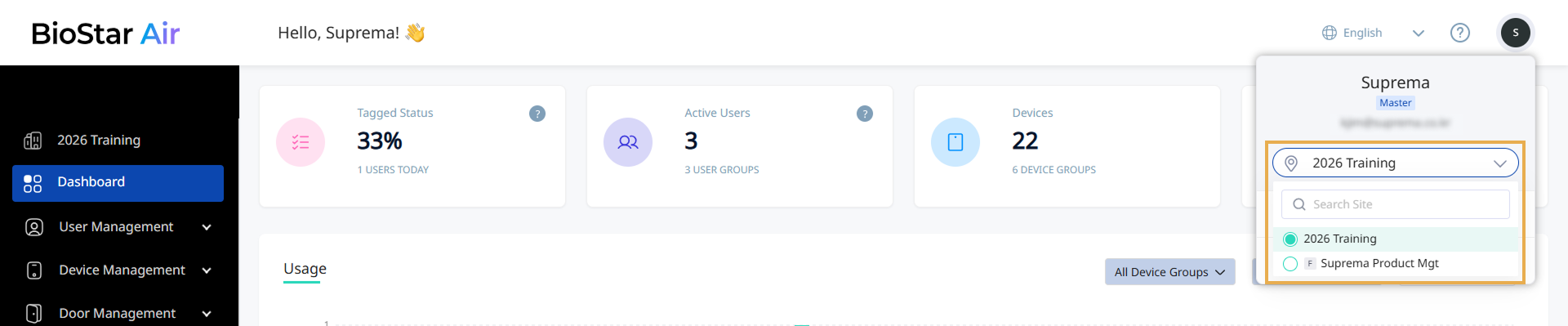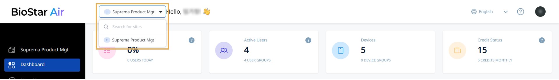 The Site Selector feature enables signing in to the BioStar Air portal with a single, unified email address even when managing multiple sites. There is no need to sign in with different email addresses for each site. Sign in once with a single email address, and then use the Site Selector menu to switch easily between the sites being managed.