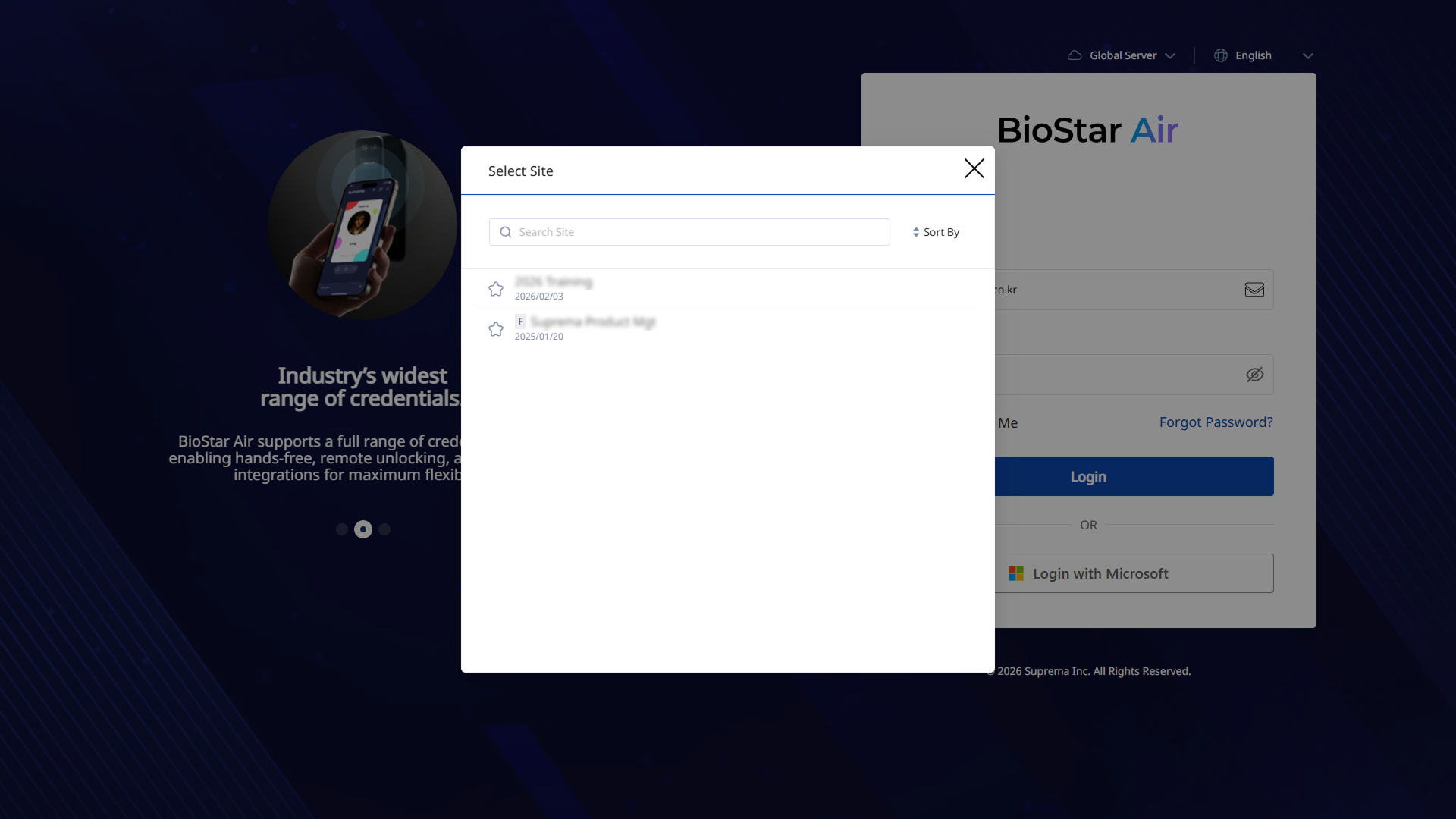 The Site Selector feature streamlines sign-in and consolidates multiple sites under one account, saving time and effort when managing sites in BioStar Air.