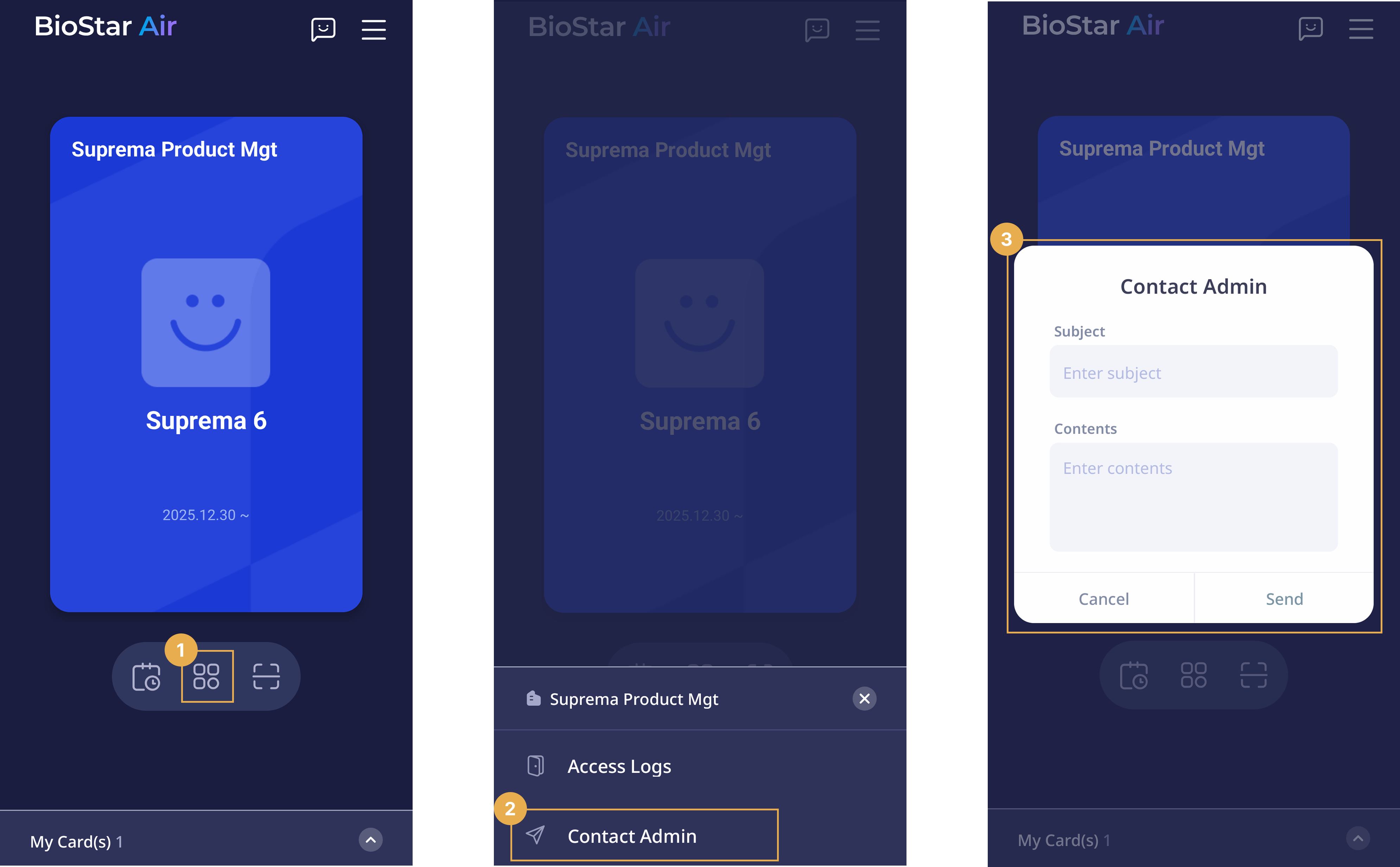 If you changed your mobile device or reinstalled the Suprema Pass app, all mobile cards were deleted for security reasons. Contact the following for mobile card reissuance.