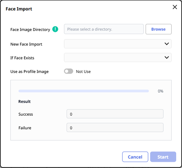 Select the method to load face images in the New Face Import option.