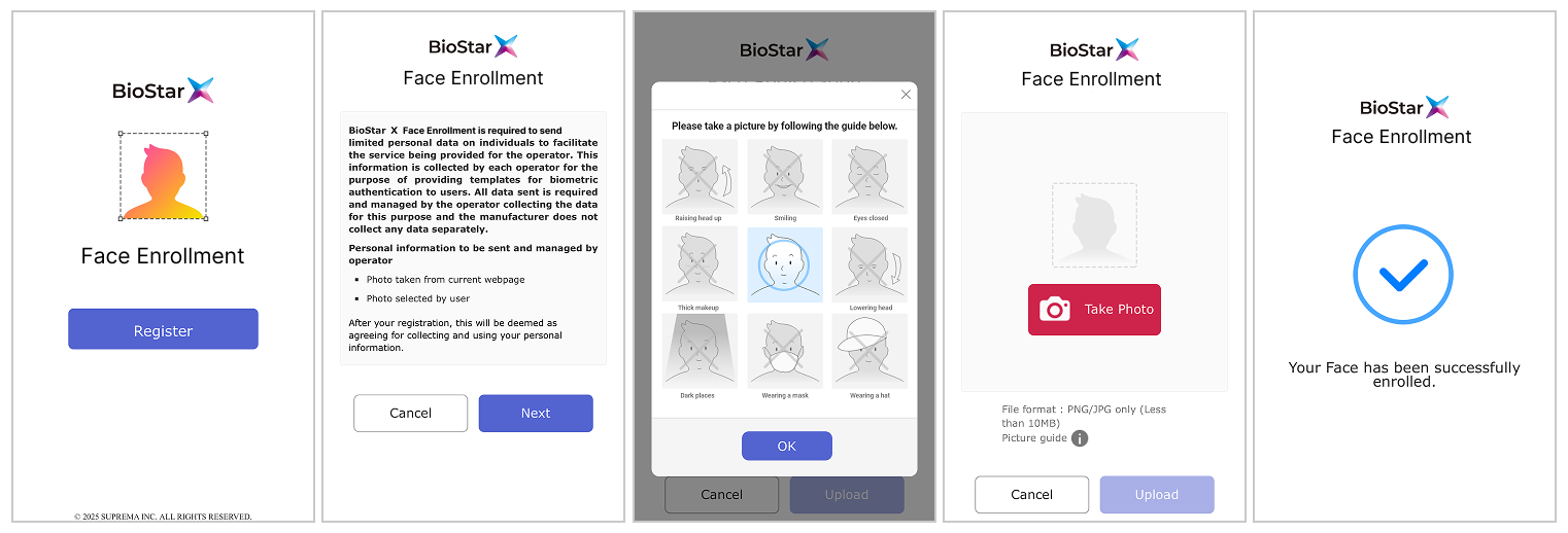 When the user accesses the sent face enrollment mobile link, the face enrollment service will be executed as shown below. Follow the instructions on the screen.