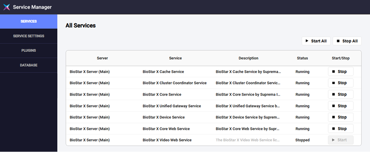 When the BioStar X Service Manager window appears in the web browser, click the SERVICES menu.