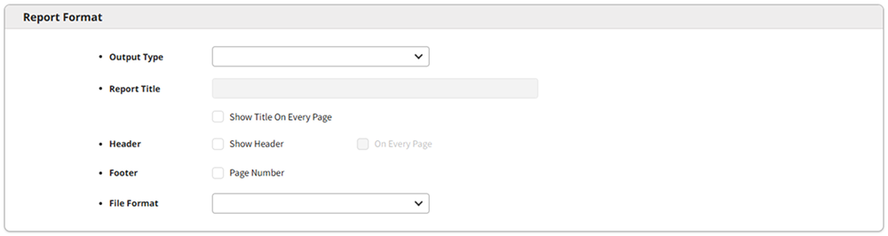 Report Title: Select Show Title On Every Page to display the report name as the title on every page.
