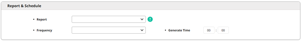 Report: Select a custom report to automatically generate. Only custom reports set to DYNAMIC period will appear.