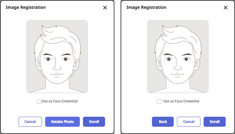 To enroll the photo taken with the webcam or the uploaded photo as a face credential, click the checkbox for the Use as Face Credential option.