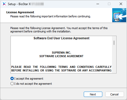 Go to the Suprema Download Center, log in, and download the installation package (BioStar X Setup.X.Y.Z.BB.exe).