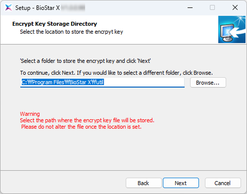 Set the installation path for BioStar X and click the Next button.