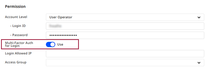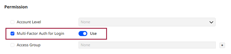 When the batch edit window appears, click the checkbox for the Multi-Factor Auth for Login option in the Permission section and set it to Use.
