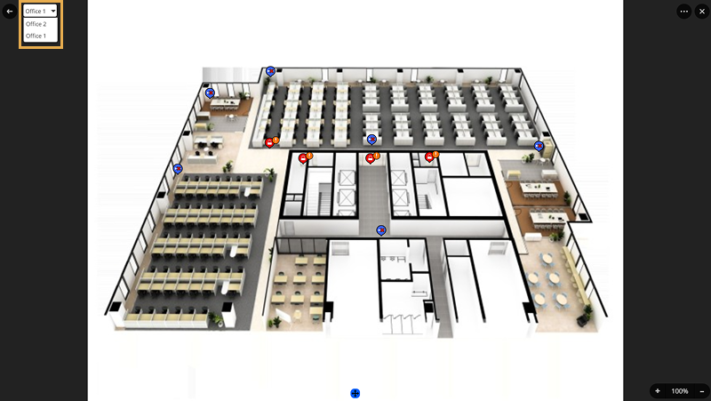 The floor selection option at the top left of the map displays only the floors configured for the facility. If the floor is not configured in the facility, it will not be displayed in the list. For more information on how to configure floors in the facility, refer to the following.