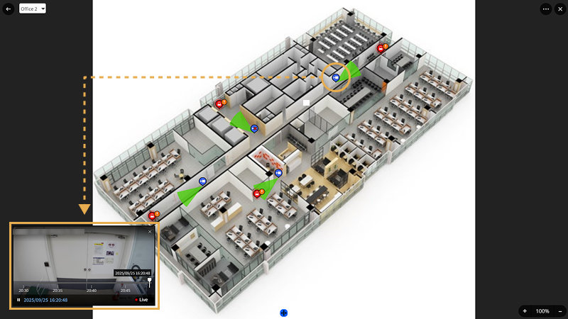 | Camera: Click on the camera to play the video of the corresponding facility or floor. | |