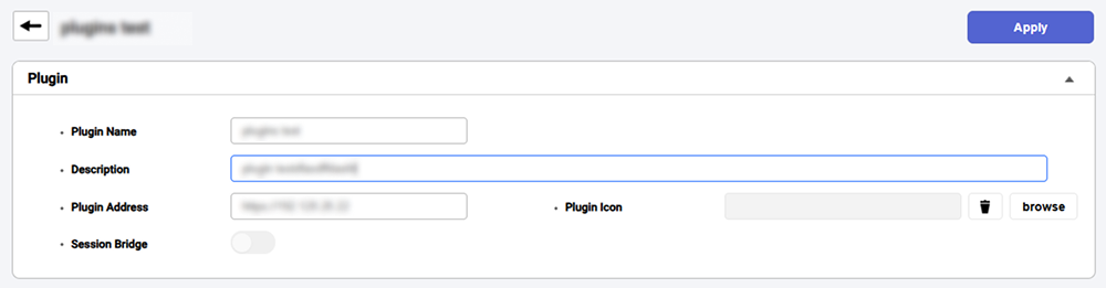 Plugin Address cannot be edited when Session Bridge is enabled.