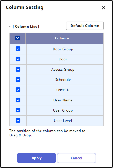 You can hide or display desired columns in the current access permission status list table. Click at the top right of the screen and select Column Setting.