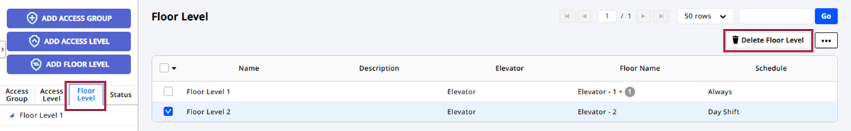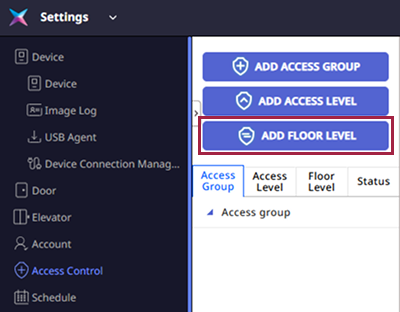 This guide describes how to set floor levels using the configured elevator and floor information. Floor levels are important elements that can be applied to access groups. By setting floor levels, you can manage the floors users are allowed to access via the elevator.