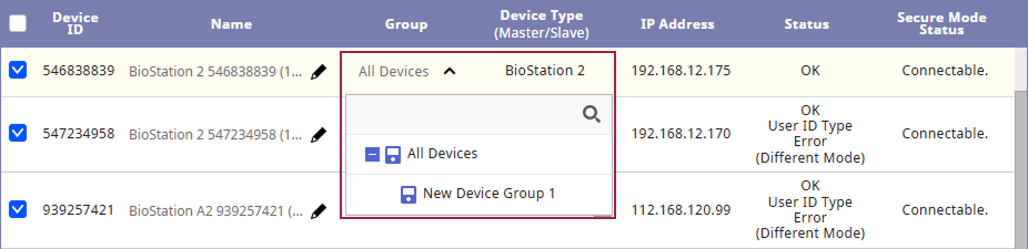 If the user ID type on BioStar X is set to alphanumeric, some devices may not be usable or may have restrictions. For more information on details, refer to the following.