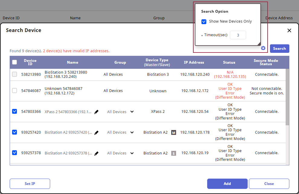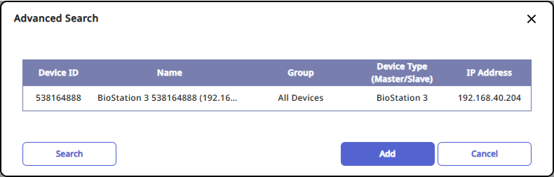 Devices on the same network as BioStar X can be automatically searched and registered.
