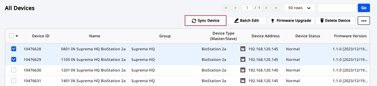 The added devices will appear in the device list. Select the added device and click Sync Device.