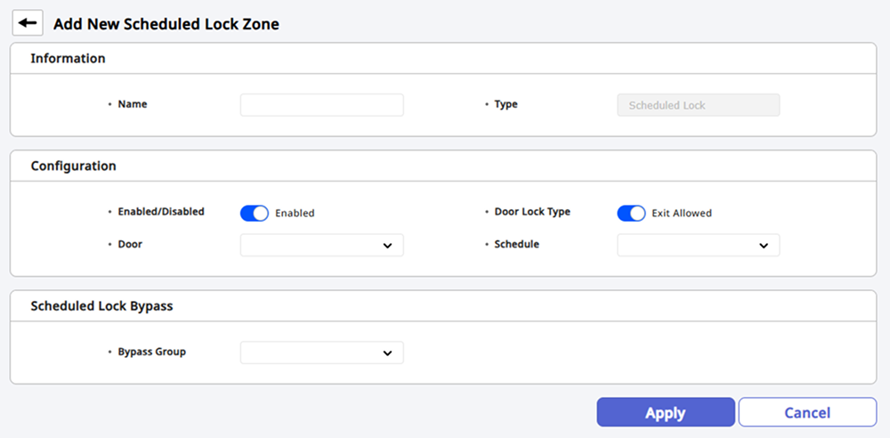 Select the access group that can bypass the schedule lock in the Scheduled Lock Bypass section. Users in this group can bypass the schedule lock.