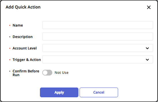 Account Level: Select the Account Level that can execute the quick action you want to add. You can select multiple options.