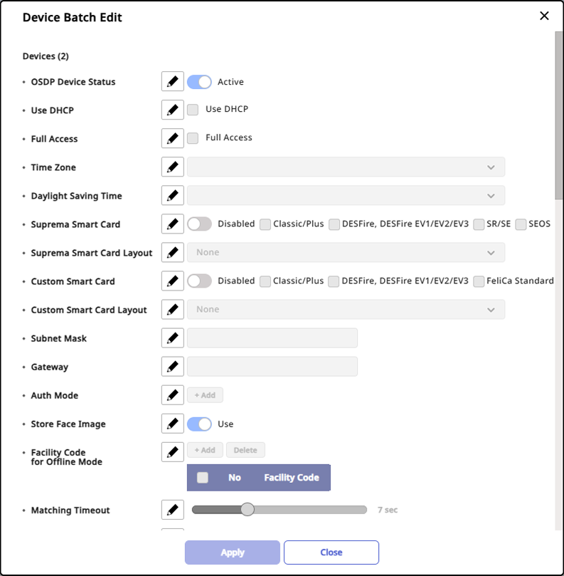 The details displayed in the Device Batch Edit window may vary depending on the selected device types.