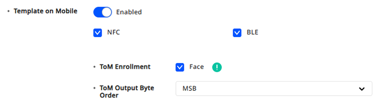 You can specify how recognition works on the Template on Mobile and set the byte order for biometrics enrolled directly by the user on the device.