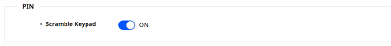 In the PIN group, you can turn the Scramble Keypad option on or off for the device's PIN authentication.