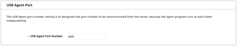 The USB Agent is a program that operates per client, and the port number setting is for the server to communicate via that port number.