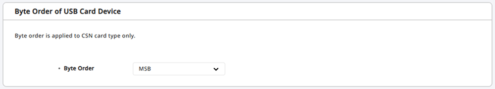 Setting the Byte Order of USB Card Device option in the Byte Order section.